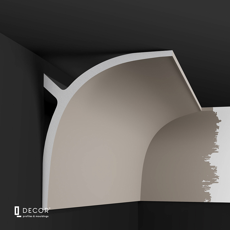 Простой закругленный карниз 14 см создает плавный переход от стены к потолку.
