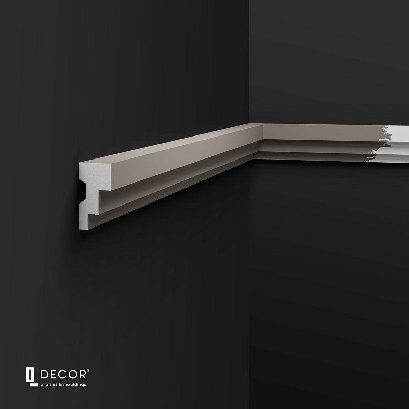 Ступенчатый настенный молдинг идеально подходит для интерьеров с чёткой геометрией и отсылками к стилю ар-деко.